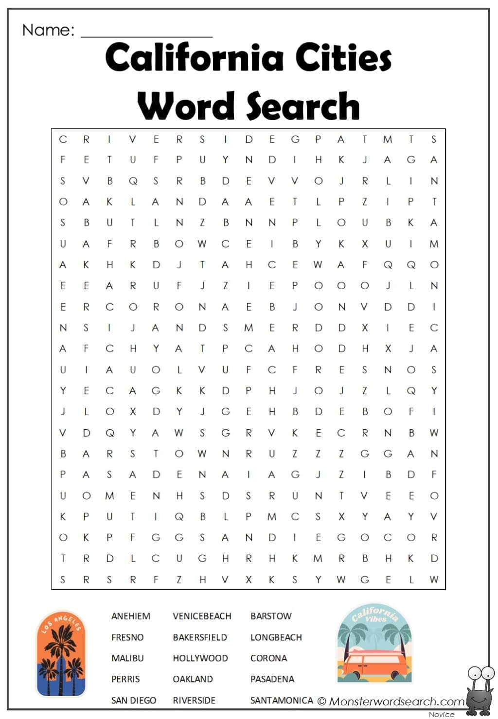 California Cities Word Search Monster Word Search
