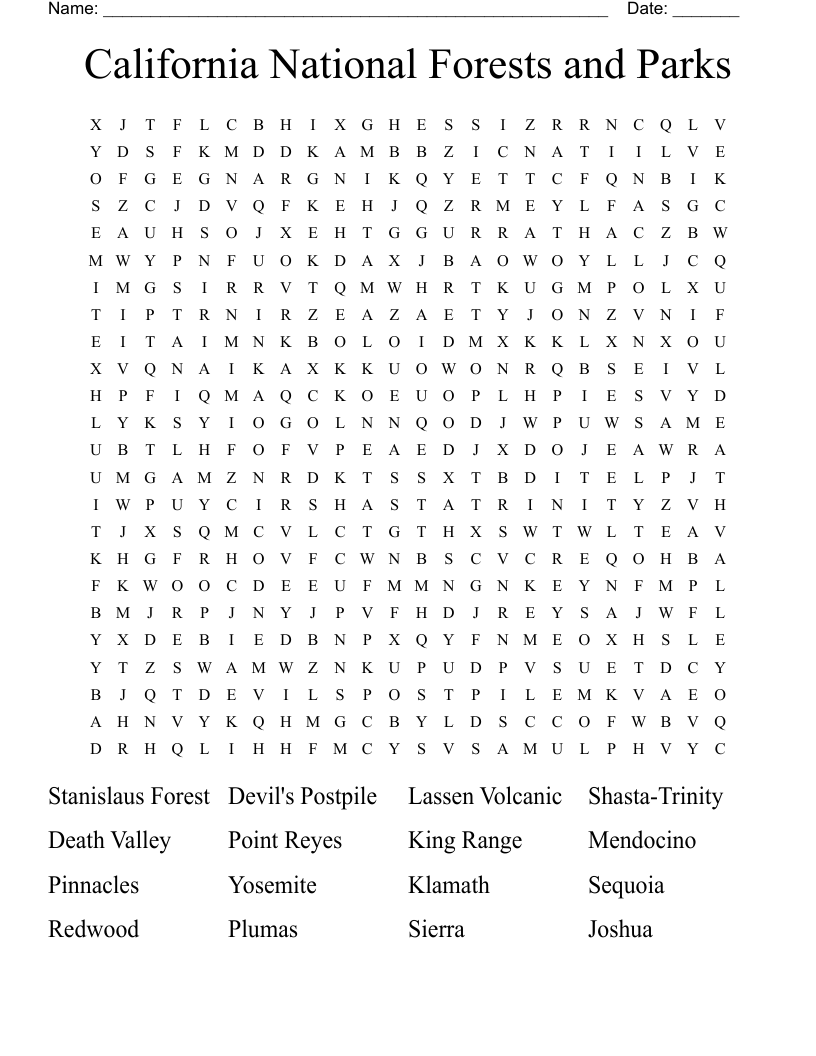 California National Forests And Parks Word Search WordMint