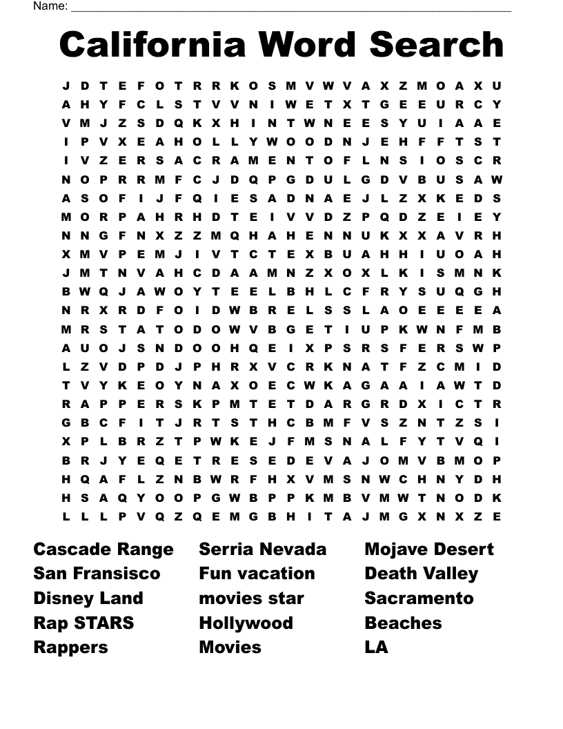 Looking for a fun and educational activity for your kids? Why not try a California Word Search Printable? This entertaining puzzle will keep them engaged while helping them learn about the Golden State.