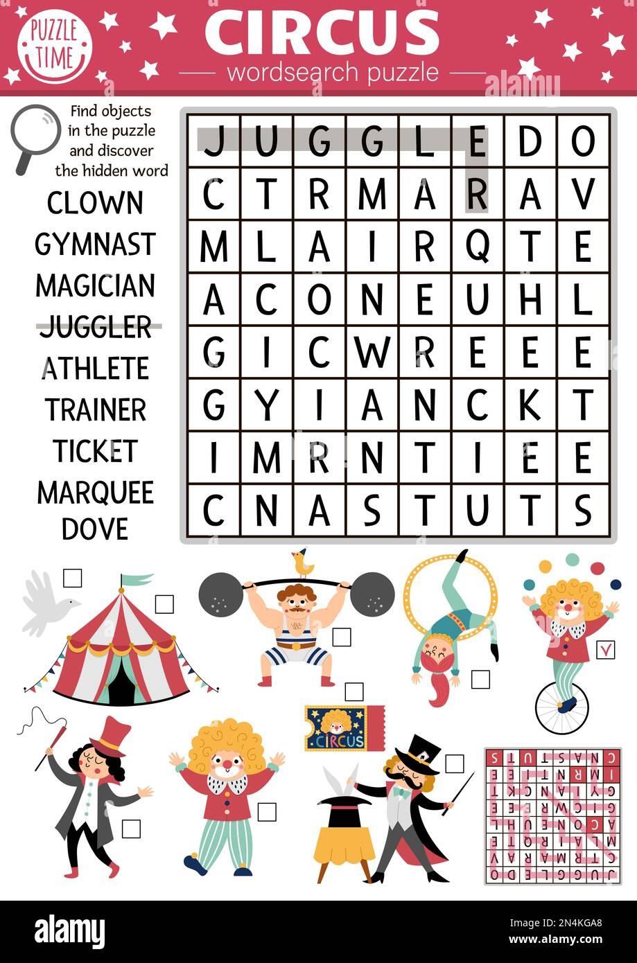 Vector Circus Wordsearch Puzzle For Kids Simple Amusement Crossword With Funny Performers For Children Activity With Clown Marquee Magician Athle Stock Vector Image U0026 Art Alamy