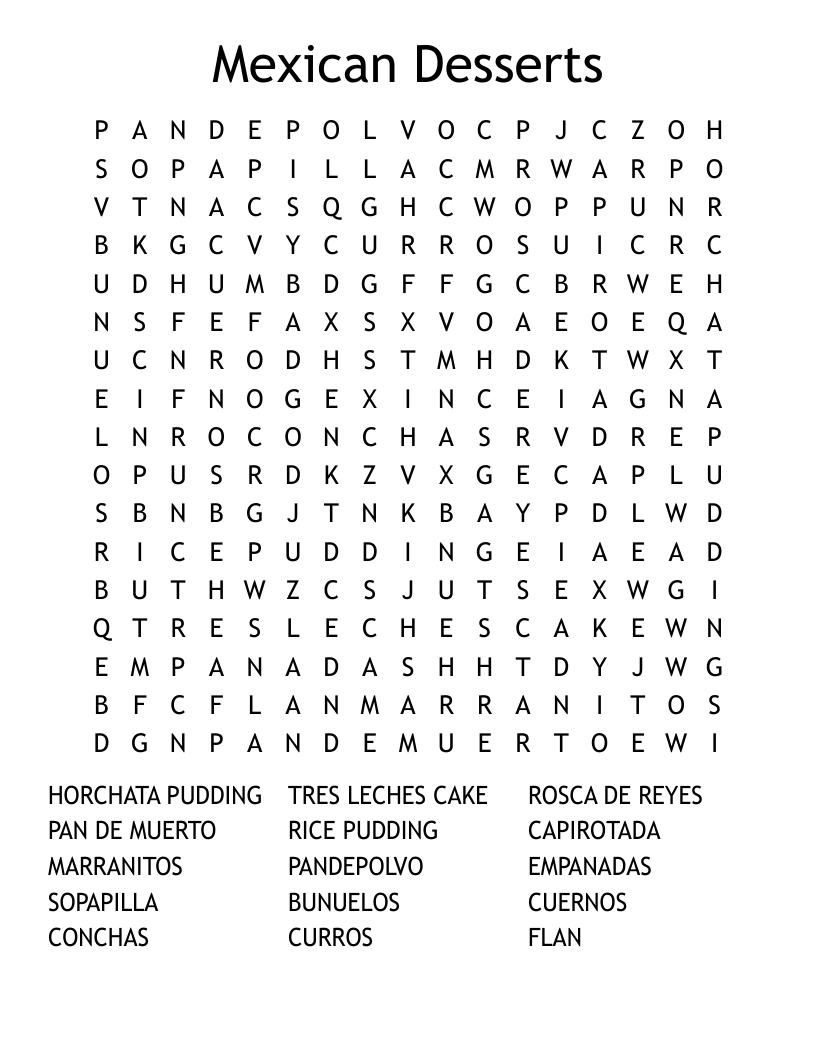 Mexican Desserts Word Search WordMint