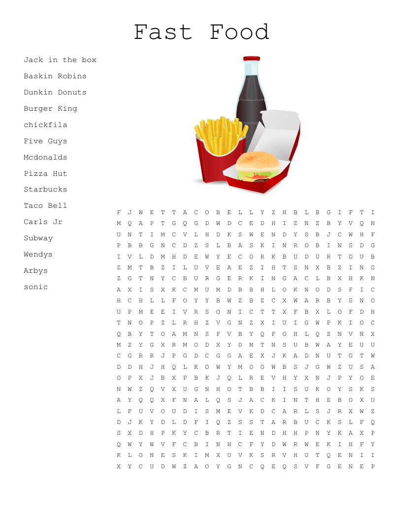 Whether you’re a fast food fanatic or just looking for a fun way to pass the time, our Fast Food Word Search Printable is sure to keep you entertained. Simply print out the puzzle, grab a pen or pencil, and get ready to start searching for delicious words!