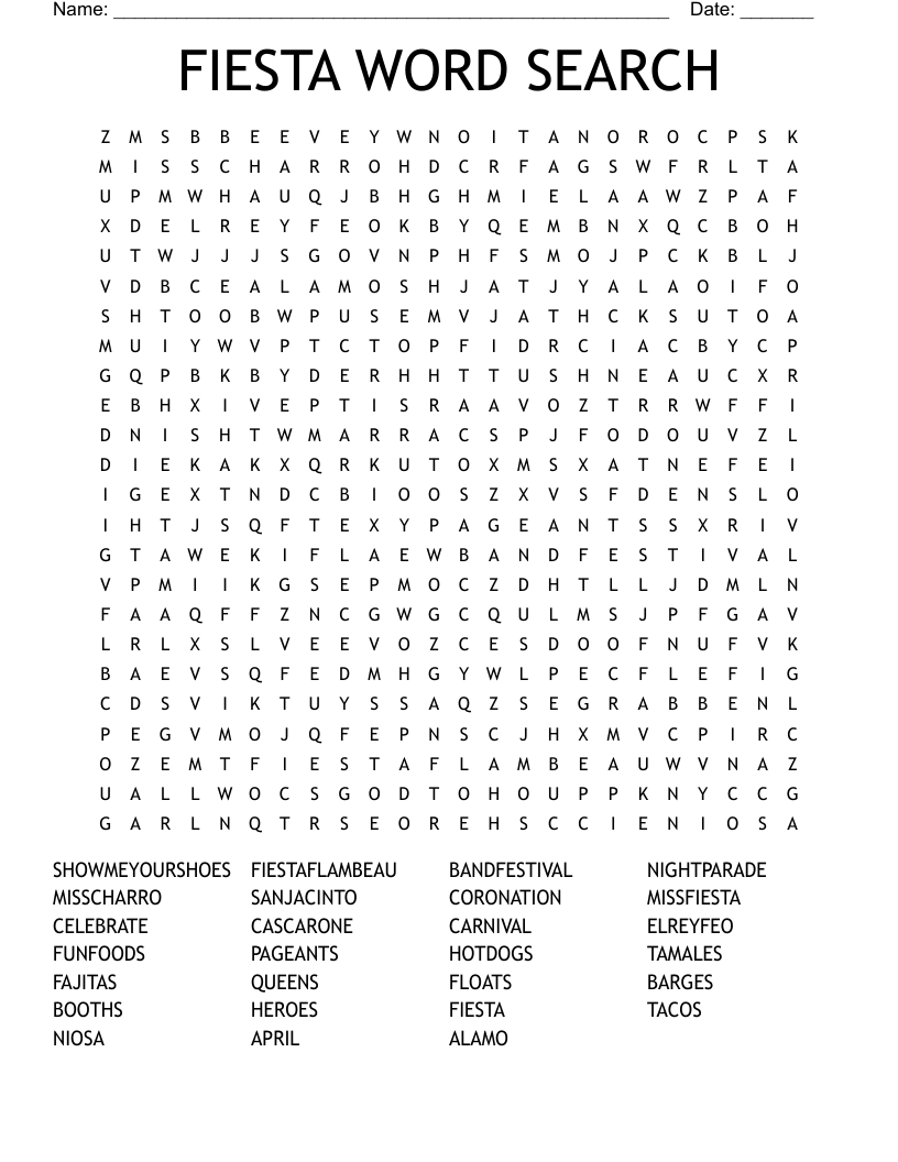 So, if you’re ready to add some fun and excitement to your next gathering, download the Fiesta Word Search Printable today. Get ready to enjoy hours of entertainment and laughter with this engaging and festive puzzle!