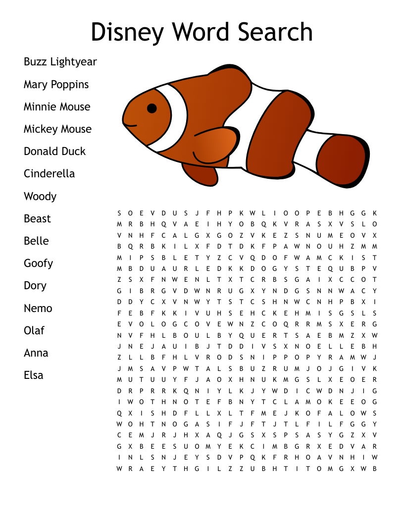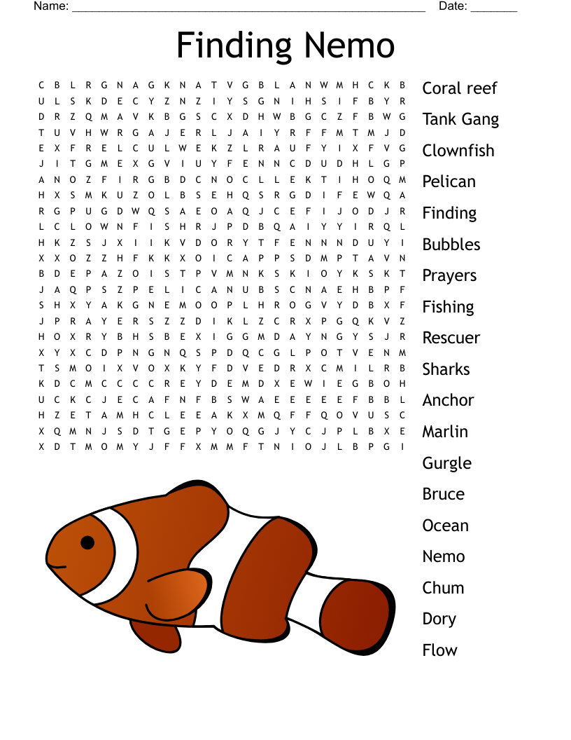 If you’re a fan of the beloved animated film “Finding Nemo” and enjoy a good word search puzzle, then you’re in luck! We’ve got a fun and challenging Finding Nemo Word Search Printable for you to enjoy.
