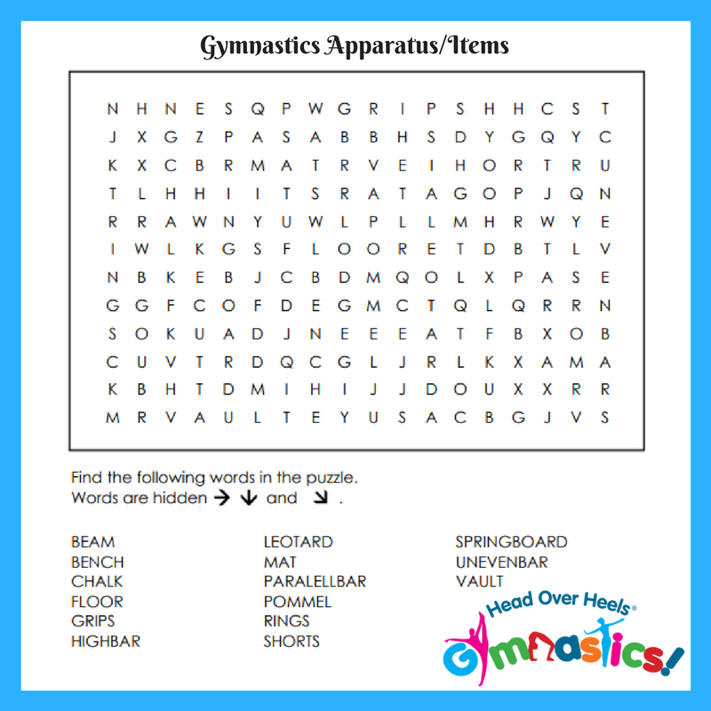 Word Search For Gymnast Activity Pages Gymnastics Party Game