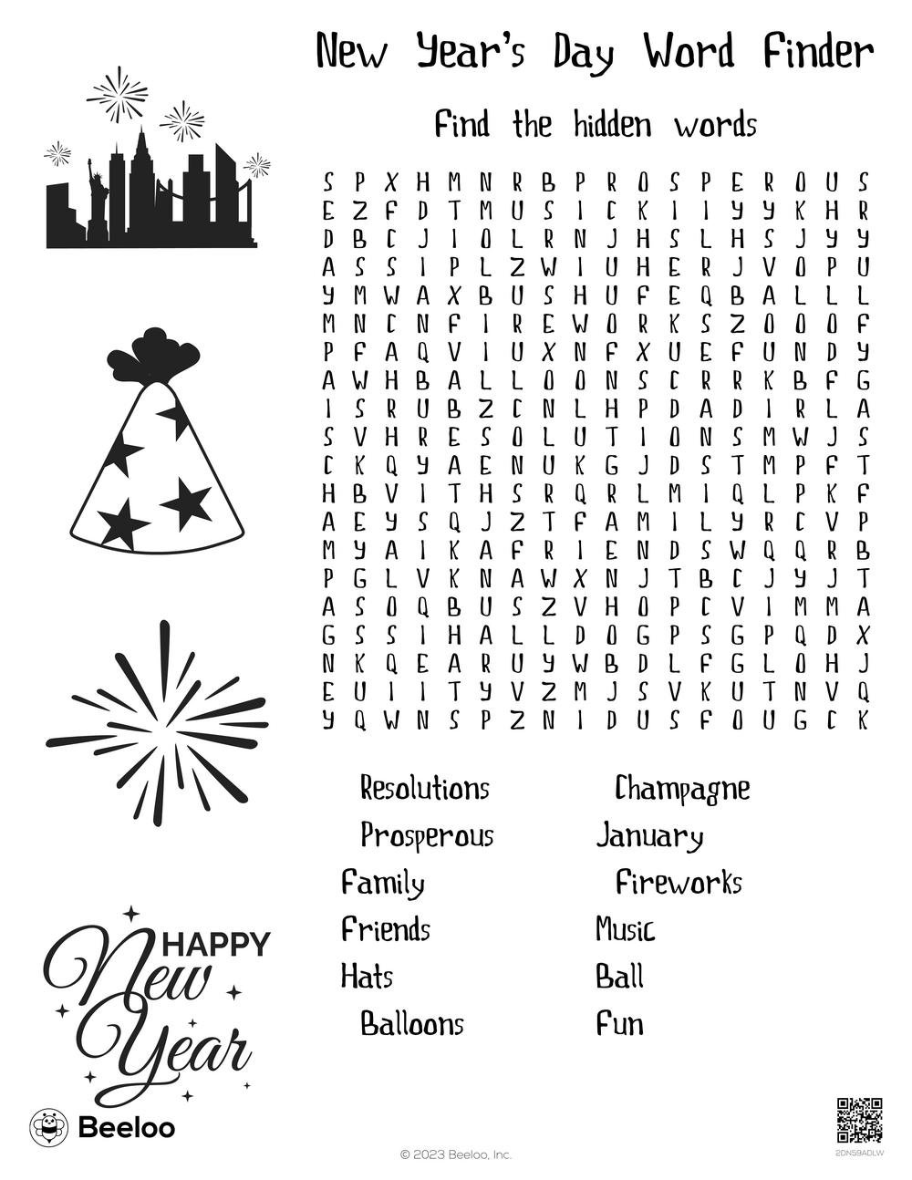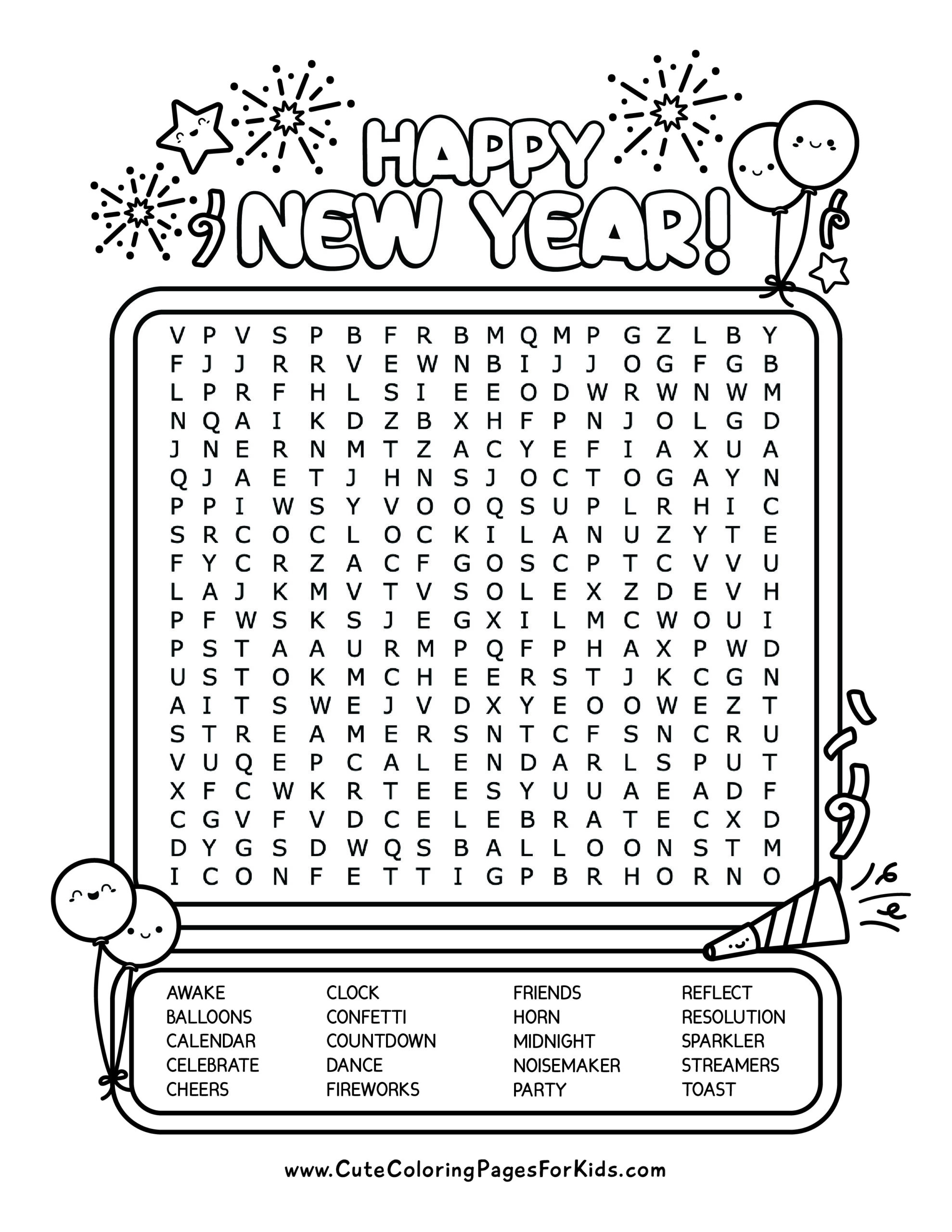 New Year themed Word Searches Beeloo Printable Crafts And