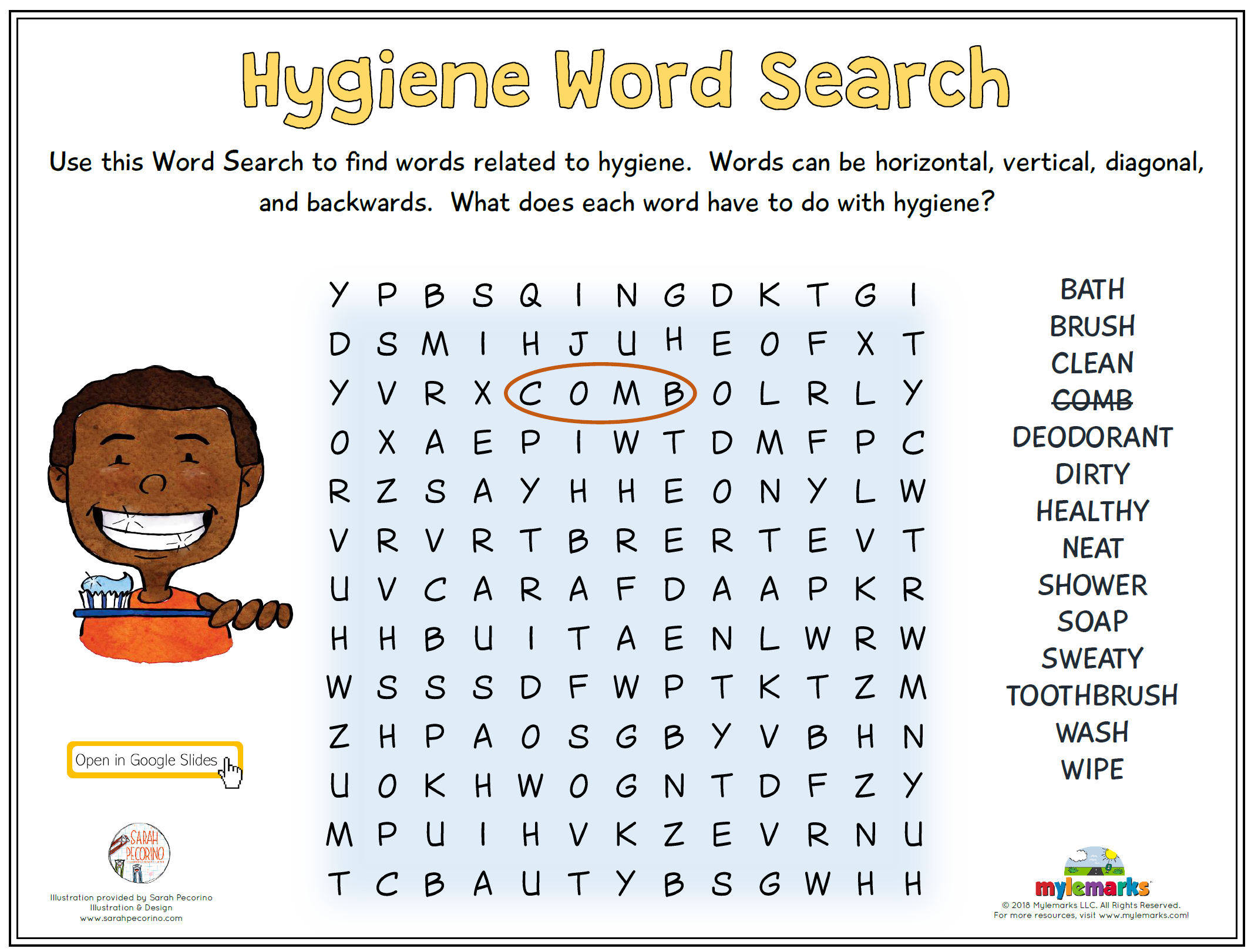 Simply download and print out the word search, grab a pen or pencil, and let your kids search for words related to hygiene such as “wash hands,” “brush teeth,” and “cover coughs.” It’s a simple yet effective way to reinforce good hygiene habits.