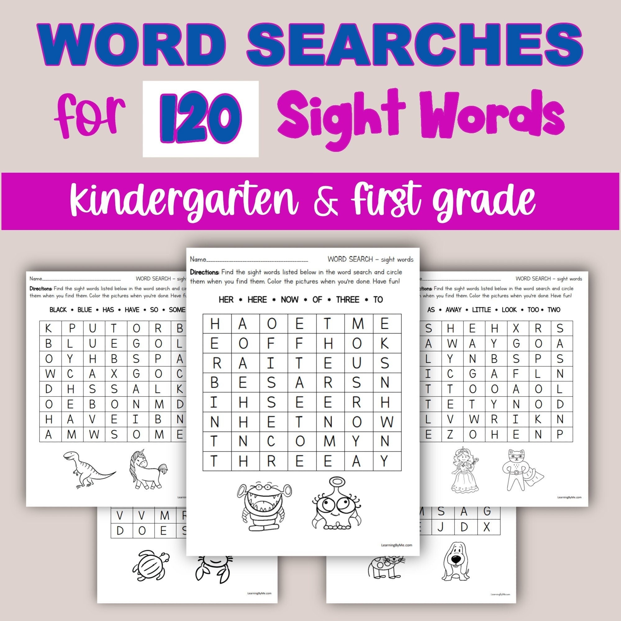 20 Printable Word Searches For 120 Sight Words kindergarten