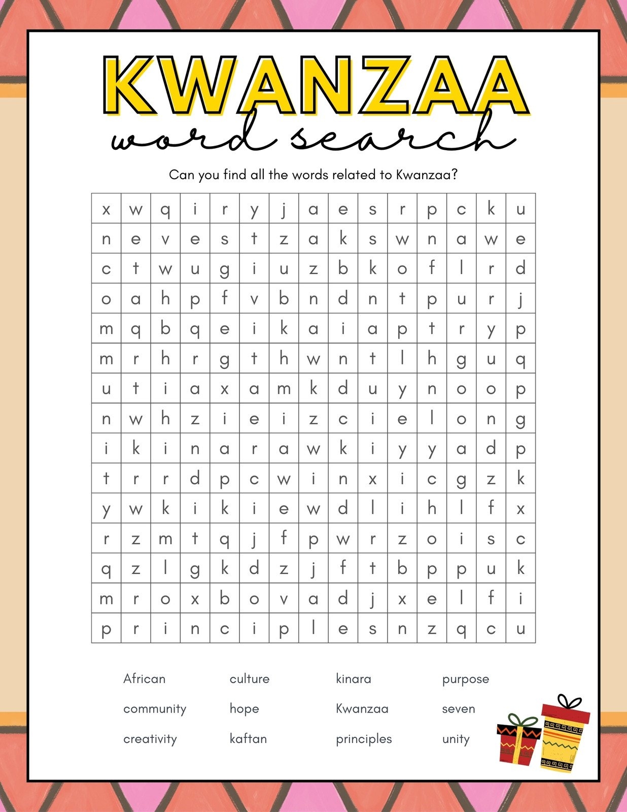 This activity is perfect for all ages, so gather your loved ones around, grab a pen or pencil, and start searching for the words together. It’s a great way to bond, have fun, and deepen your understanding of Kwanzaa.