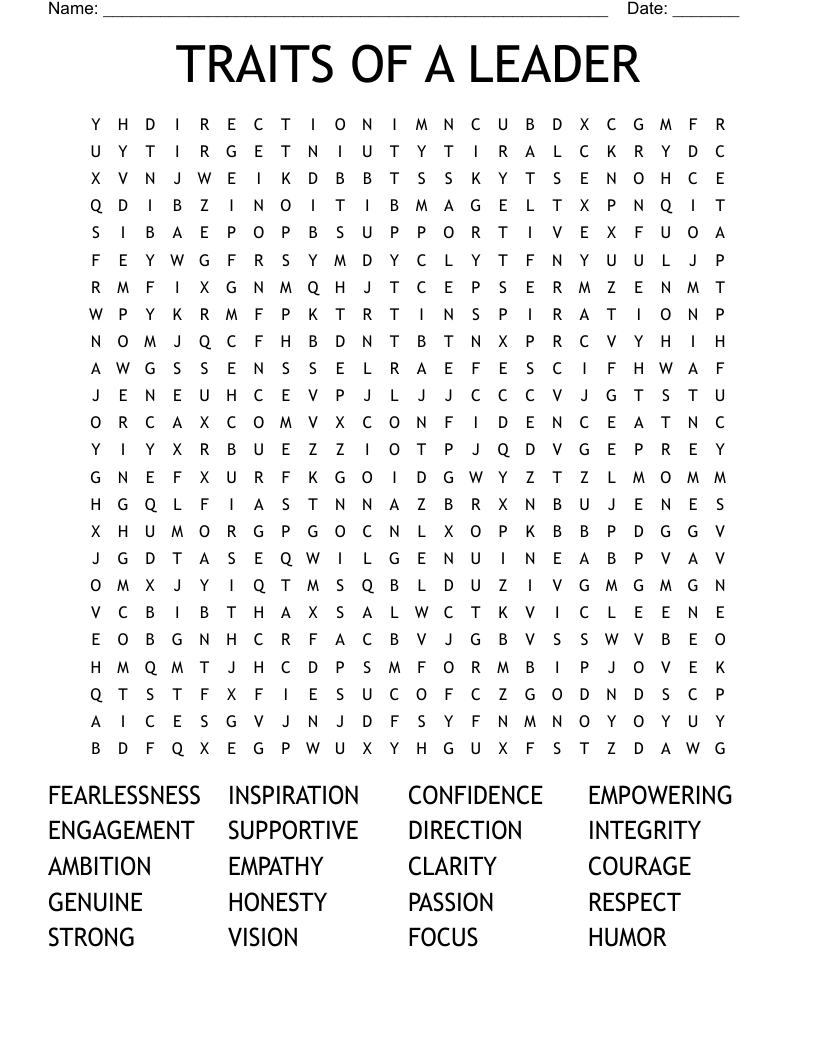 TRAITS OF A LEADER Word Search WordMint