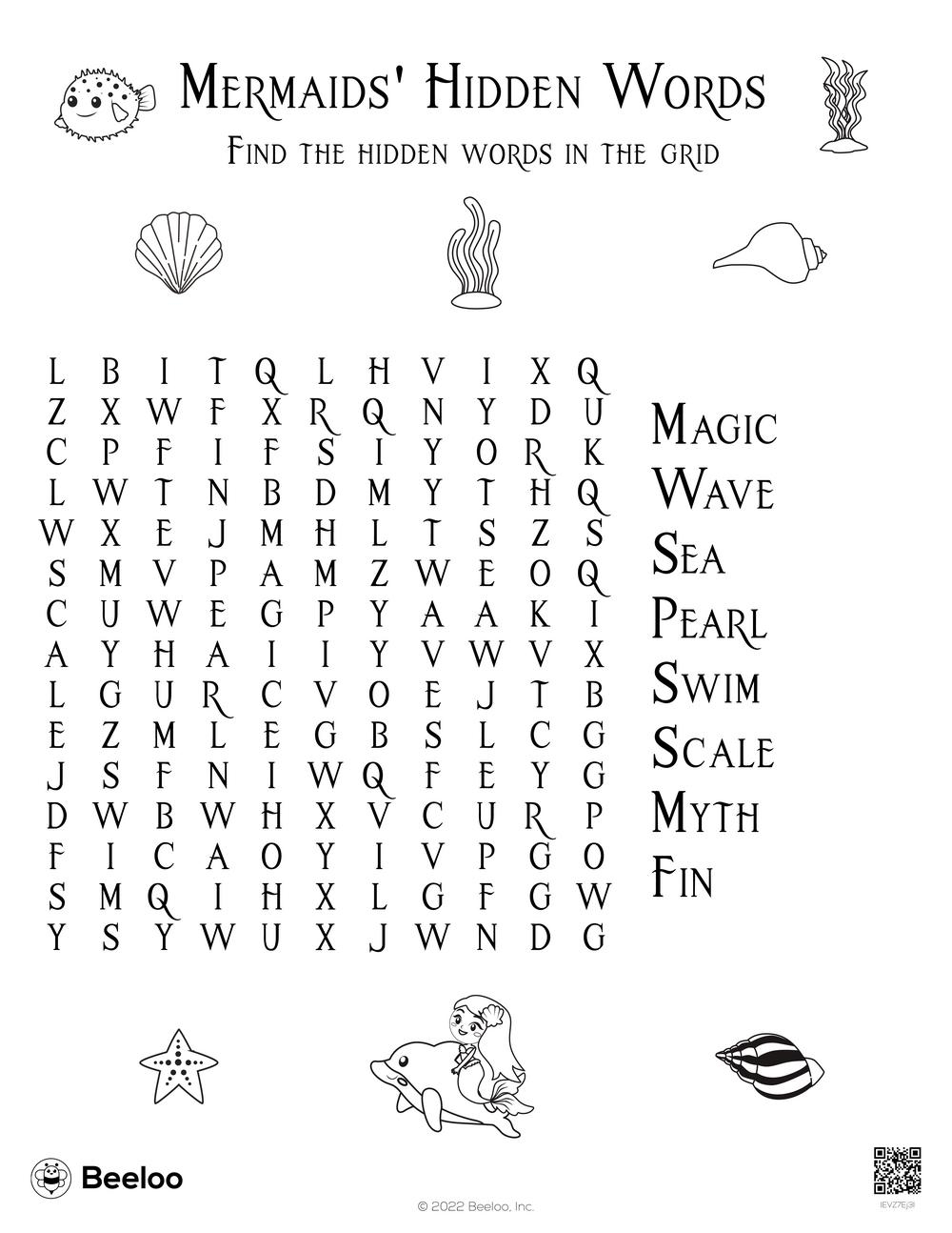 Mermaid themed Word Searches Beeloo Printable Crafts And