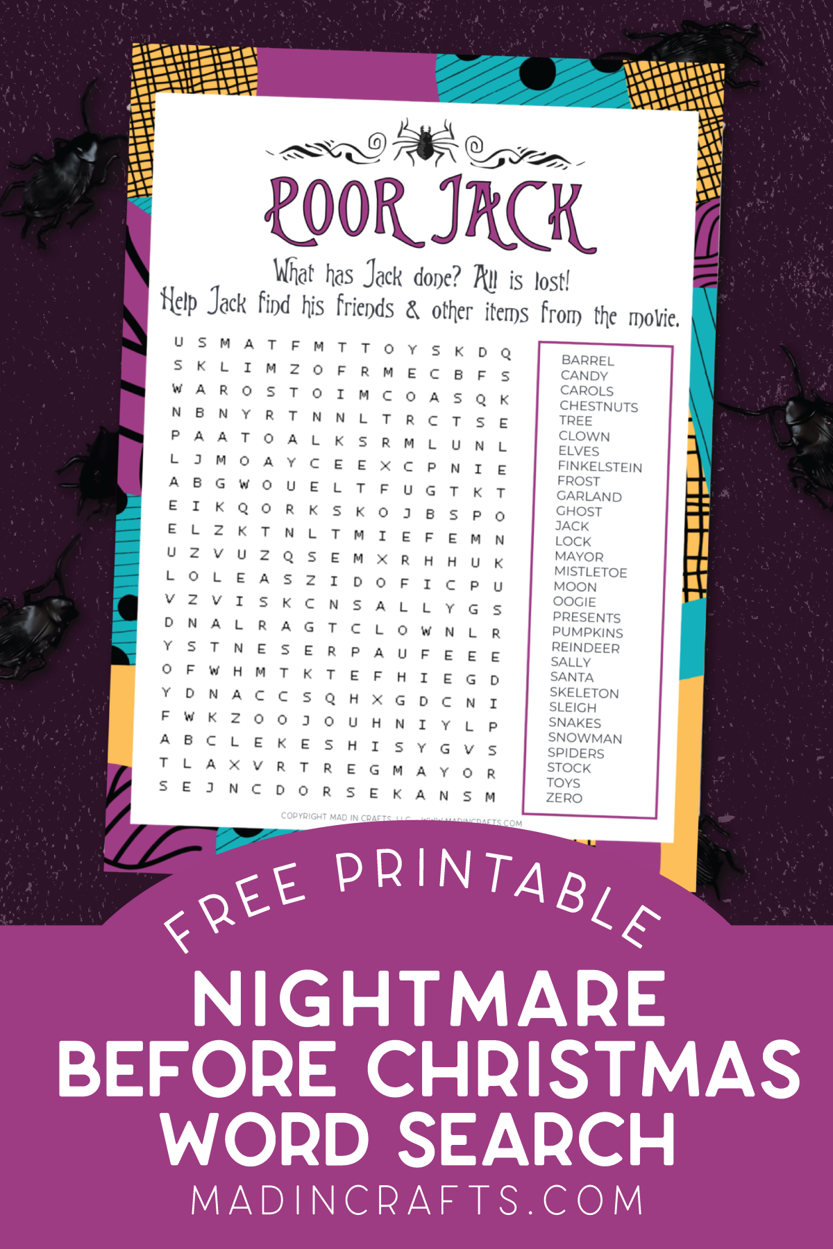 FREE NIGHTMARE BEFORE CHRISTMAS WORD SEARCH Halloween Mad In Crafts