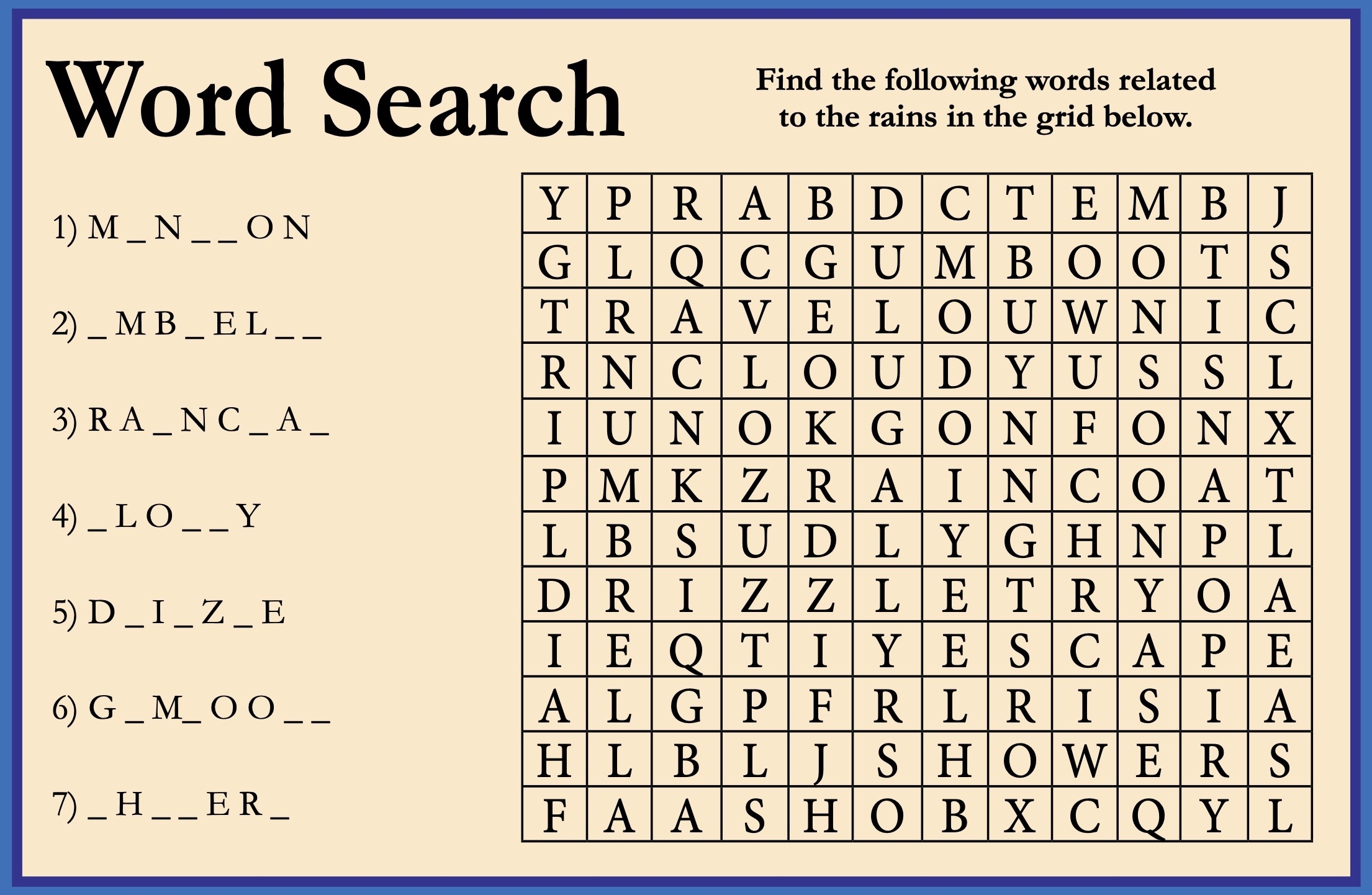 Ever find yourself stuck inside on a rainy day with nothing to do? Look no further! We’ve got the perfect solution for you – a Rainy Day Word Search Printable. This fun and engaging activity will keep you entertained for hours while the rain pours outside.