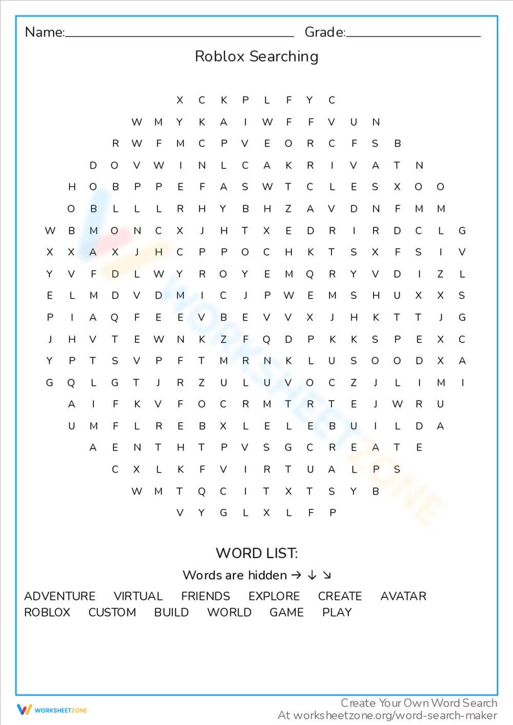 Roblox Searching Word Puzzle Game Worksheet