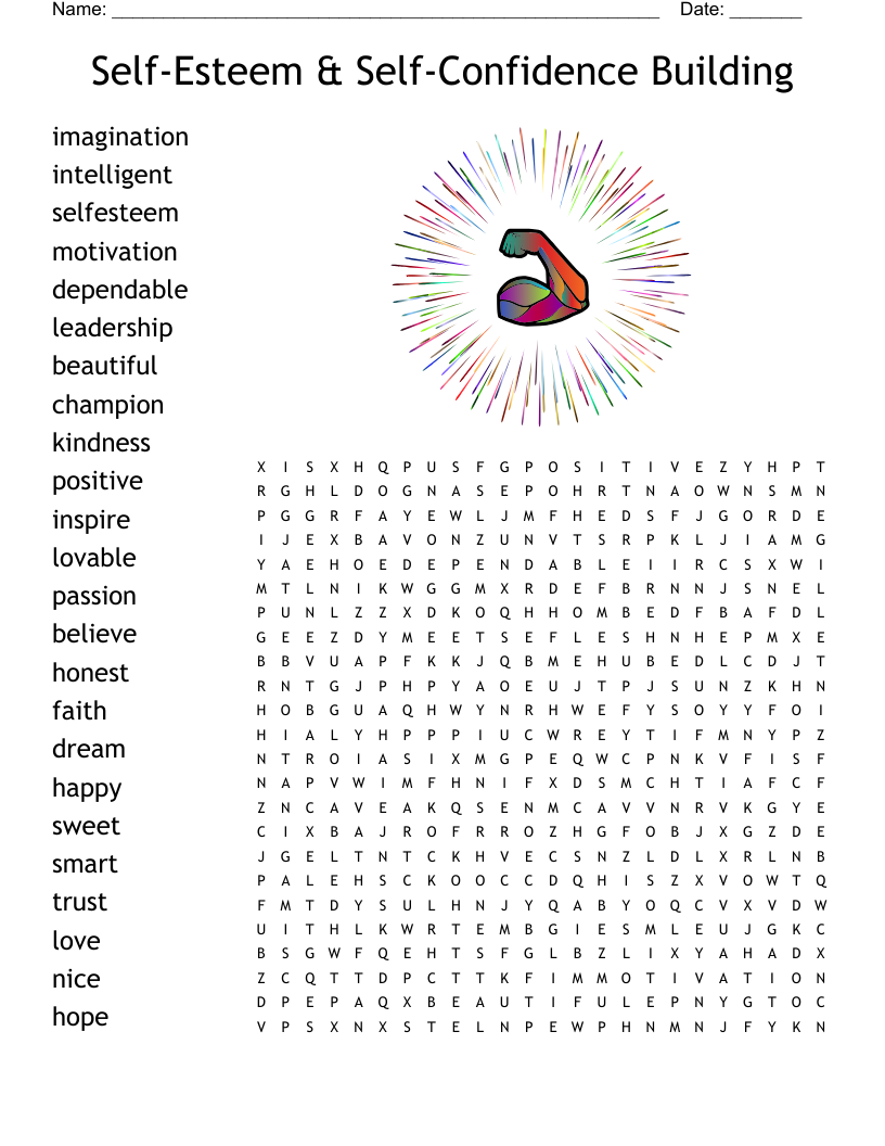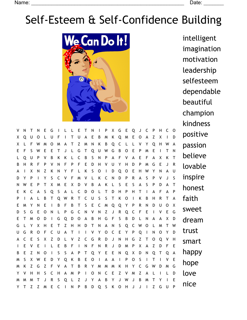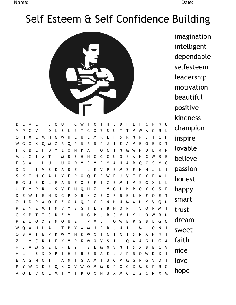 Self Esteem U0026 Self Confidence Building Word Search WordMint