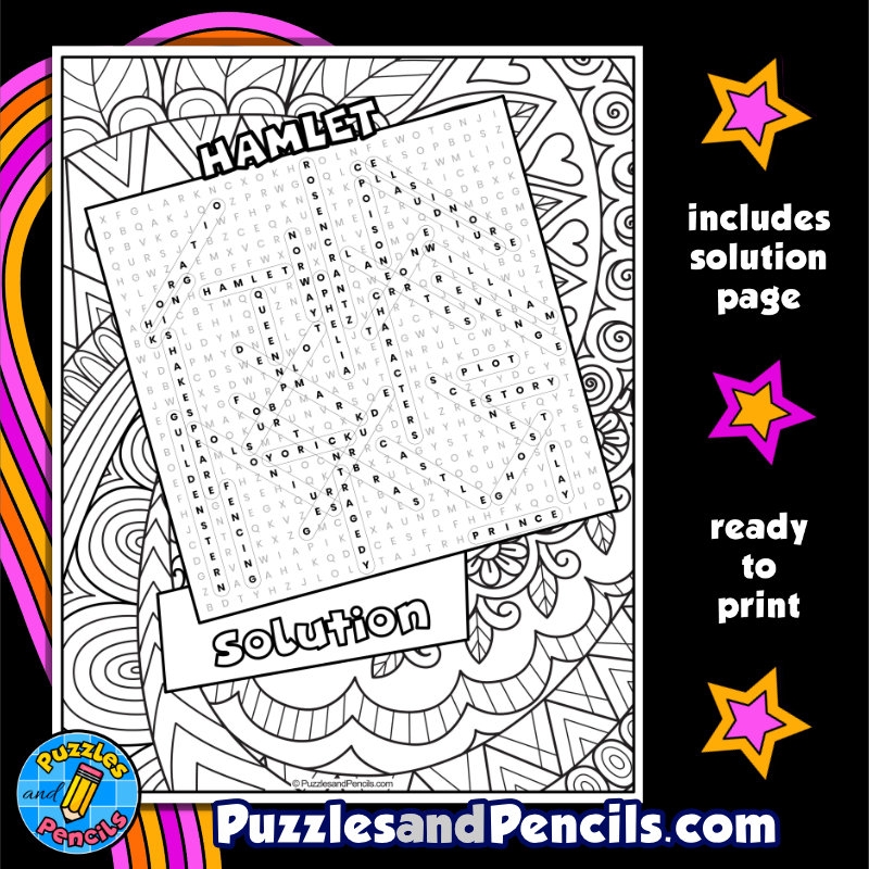 Hamlet Word Search Puzzle Activity Page William Shakespeare Wordsearch Made By Teachers