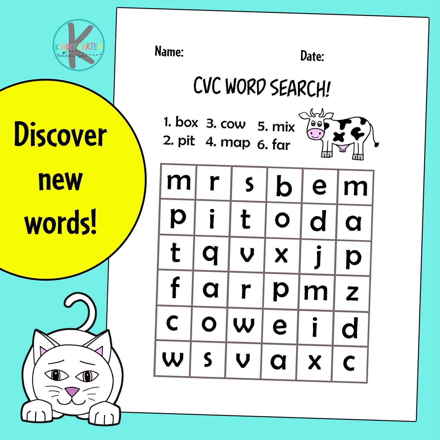 FREE Printable Kindergarten CVC Word Search Worksheets