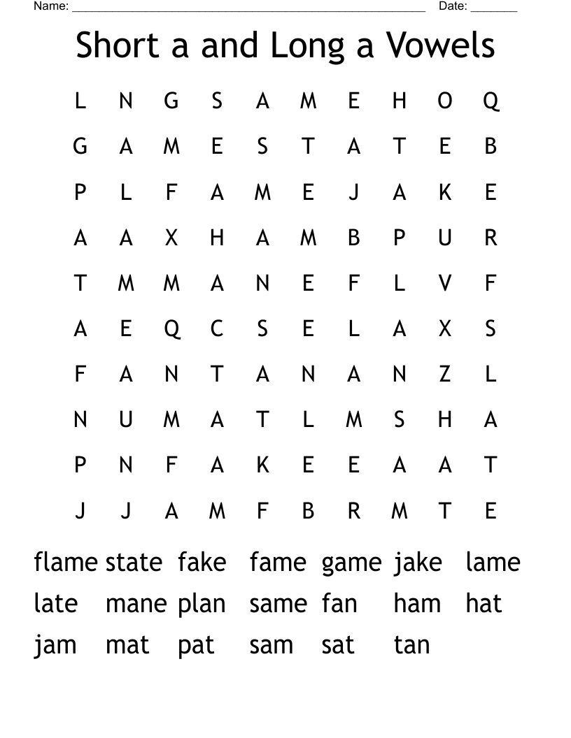 Short A And Long A Vowels Word Search WordMint