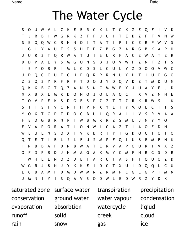 With a water cycle word search printable, kids can have a blast searching for words related to the water cycle such as evaporation, condensation, precipitation, and more. It’s a hands-on way to reinforce their understanding of this important natural process.